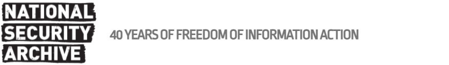 THE NATIONAL SECURITY ARCHIVE is an independent non-governmental research institute and library located at The George Washington University in Washington, D.C. The Archive collects and publishes declassified documents acquired through the Freedom of Information Act (FOIA). A tax-exempt public charity, the Archive receives no U.S. government funding; its budget is supported by publication royalties and donations from foundations and individuals. PRIVACY NOTICE The National Security Archive does not and will never share the names or e-mail addresses of its subscribers with any other organization. Once a year, we will write you and ask for your financial support. We may also ask you for your ideas for Freedom of Information requests, documentation projects, or other issues that the Archive should take on. We would welcome your input, and any information you care to share with us about your special interests. But we do not sell or rent any information about subscribers to any other party. |